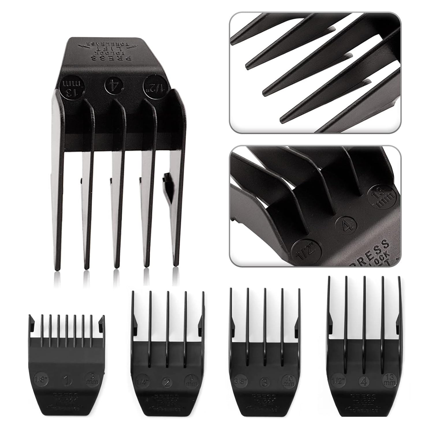 Professional Peanut Clipper Guards - 4-Piece Clipper Guides For Wahl Peanut, Trimmer Cutting Guides Set - Compatible with Peanut Blade, Black
